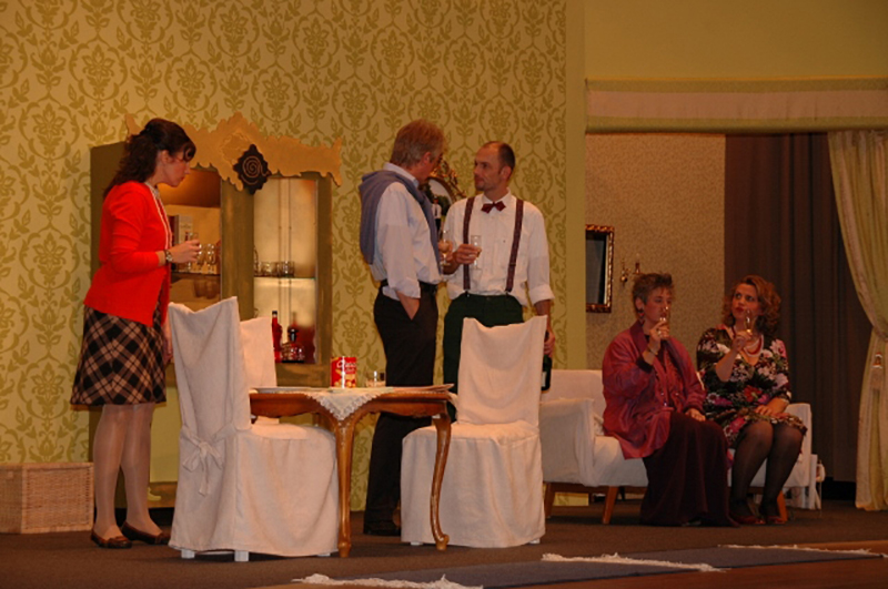 Eine englische Komödie, gekennzeichnet durch Wortwitz und Rededuelle. Die Spannung resultiert vor allem aus den Fragen: Was geschah wirklich und wie ziehen die Protagonisten ihre ehepartnerschaftlichen Köpfe aus den sich immer weiter zuziehenden Schlingen? Klassisches Boulevard-Theater!